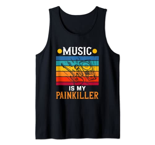 - ¿Eres un apasionado de la música y el DJ o tocas un instrumento en una banda u orquesta? Entonces tienes que comprar este diseño de música vintage con el lema Music is my painkiller. Llévalo a un concierto o
