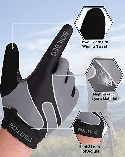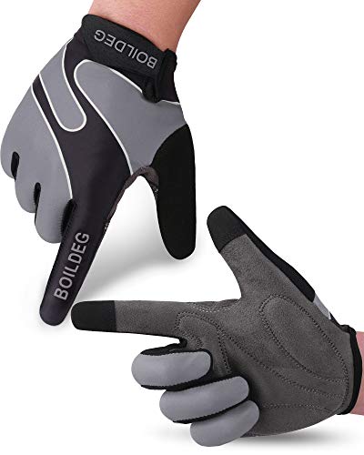 boildeg Guantes de Ciclismo,Guantes MTB,Antideslizante Pantalla Táctil,Tela Transpirable,Adecuado para Ciclismo de Montaña,Todo el Vehículo de Terreno,Bicicleta de Montaña (Gris, L)