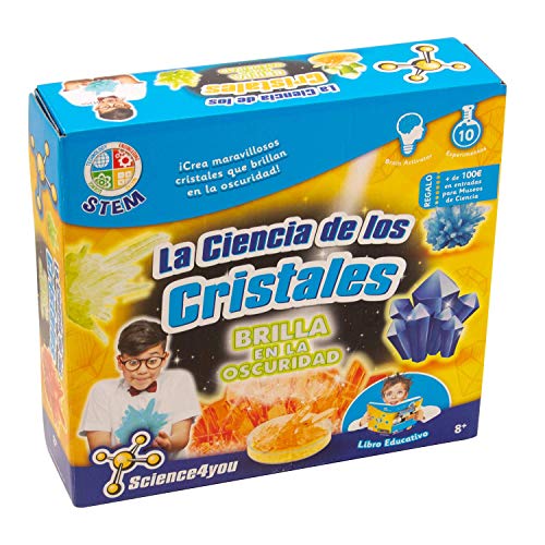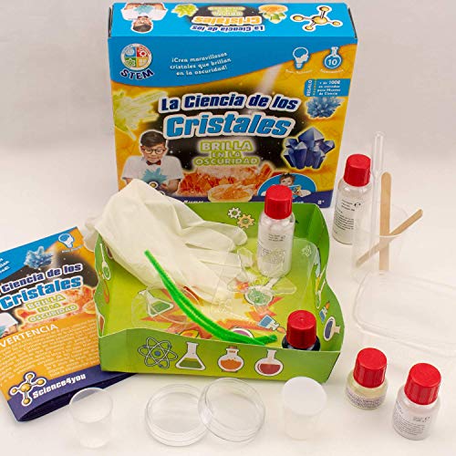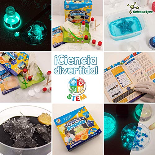 Science4you - La Ciencia de los Cristales, Brilla en la Oscuridad para Niños 8+ Años - Kit Cientifico, 10 Experimentos y Manualidades, Juegos Educativos para Niños 8+ Años