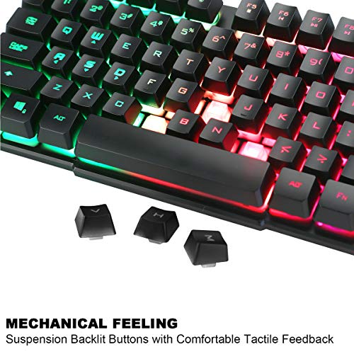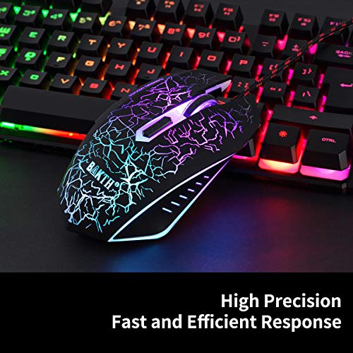 BAKTH Teclado y Ratón para Juegos, Color del Arco Iris USB LED Retroiluminada del Gaming Teclado y Ratón para Juego o Trabajo, Alto Desempeño, Mecánico Similar Teclado