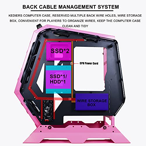 - [Potente sistema de enfriamiento] - KEDIERS La caja abierta de la computadora viene preinstalada con 7 ventiladores RGB-LED con dos anillos de luz: 3 frontales, 2 superiores, 2 laterales; El diseño abierto puede mantener la GPU baja continuamente, lo que hace que su computadora funcione sin problemas.