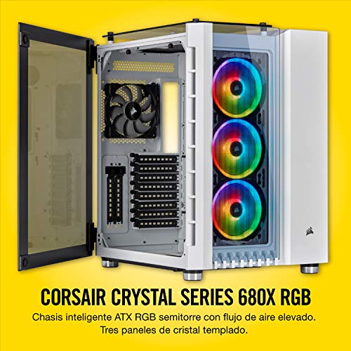 Corsair Crystal Series 680X RGB - Caja de PC, Vidrio Templado ATX Smart Gaming Case, con alto flujo de aire, iluminación RGB LED, Blanco