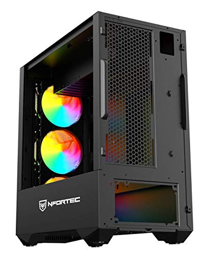 Nfortec Synistra Black Torre Gaming ATX 3.0 RGB con Frontal Mallado, más de 20 Modos de iluminación e Instalación en Formato Vertical - Color Negro