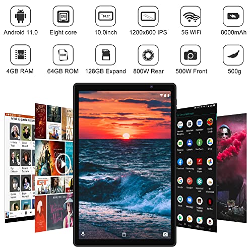 - ?【8000MAH & PANTALLA HD】Tableta tiene una batería incorporada de 8000 mAh. Una vez que la tableta está completamente cargada, la duración de la batería puede alcanzar de 6 a 8 horas. Admite Wi-Fi 5G, transferencia de archivos Bluetooth. La tableta utiliza una pantalla IPS de alta definición 2.5D con una resolución de 1280 × 800. Las cámaras de alta definición delantera de 5 MP y trasera de 8 MP facilitan la grabación de momentos maravillosos.