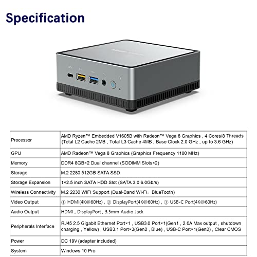 - Alto rendimiento: Ryzen CPU con gráficos de Radeon Vega 8. DUAL CANAL DDR4 RAM (2 x 8 GB) 16 GB y 512 GB M.2 SSD.UM250 MINISFORUM mini-PC pueden admitir la extensión a 64 GB RAM.