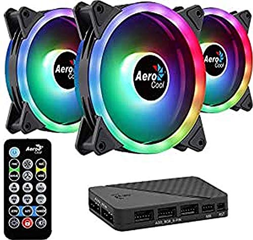 Aerocool DUO12PRO, Kit 3 Ventiladores 120mm, ARGB LED Dual Ring, Antivibración