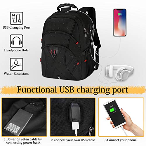 KTMOUW Mochila Portatil 17.3 Pulgadas Hombre Impermeable Mochilas Puerto USB 17 Pulgadas Trabajo Ordenador Viaje Negocio Multifuncional Mochila Daypacks Negro-17.3inch