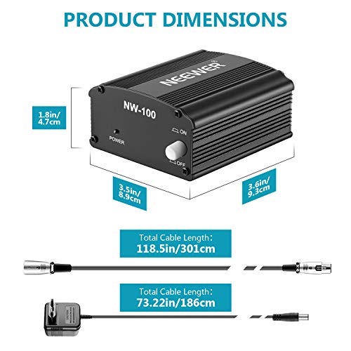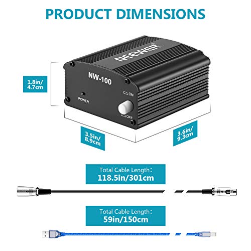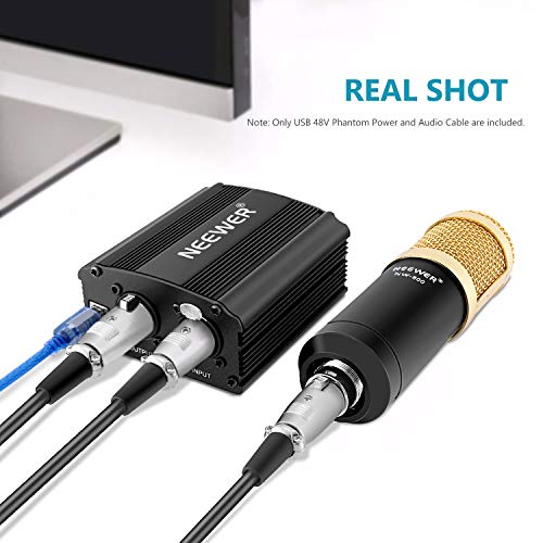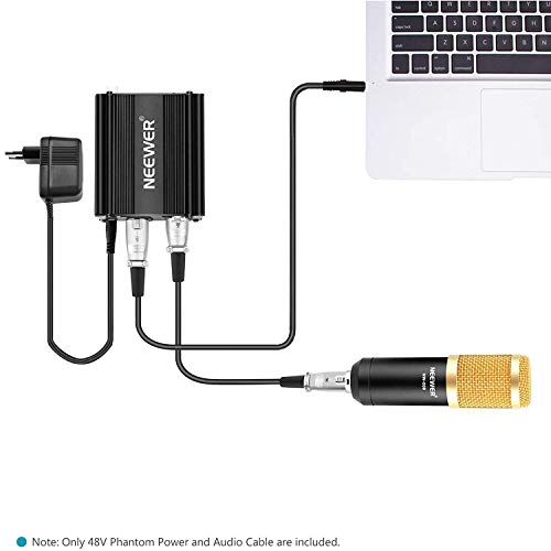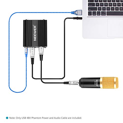 Neewer 1-Canal 48V Fuente de Alimentación Fantasma con 1,5 metros USB Cable, BONUS+XLR 3 Pin Cable de Micrófono para Cualquier Micrófono Equipo Grabación Música