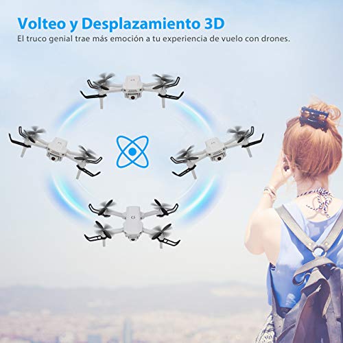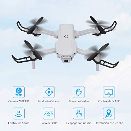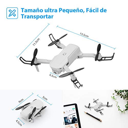 - ✈【Multifuncional RC Mini Drone Plegable】✈Modo de seguimiento con un clic, el despegue o aterrizaje con una tecla, el modo sin cabeza y la función de retención de altitud te ayudan a controlar el dron sin ninguna dificultad.No perderá orientación con el modo sin cabeza. Simplemente presione un botón, despegará, aterrizará como su comando. Retorno de una tecla,No te preocupes por la pérdida del dron.