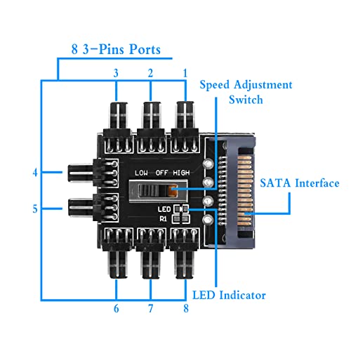 - 【Radiador de Computadora Práctico】: ¿Su computadora siempre se calienta debido al aumento en el tiempo de uso de computadora? Utilice el controlador de velocidad de 12V y3 pines, puede proporcionarle un buen rendimiento de disipación de calor. Puede admitir que 1 a 8 vías funcionen al mismo tiempo, resolver el problema de las interfaces insuficientes de la placa base y también es muy amigable para la gestión de cables de ventiladores.