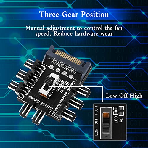 - 【Ajuste de Velocidad Rápido】: Con el controlador de ventilador de SATA, puede controlar fácilmente varios ventiladores de la computadora al mismo tiempo, y puede ajustar rápidamente la velocidad de funcionamiento del ventilador de acuerdo con sus necesidades de acuerdo con la marcha baja/rápida y el apagado en el controlador de velocidad del ventilador. que es muy conveniente y fácil de operar.