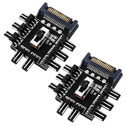 12V 3 Pines Controlador de Velocidad de Ordenador 2 Piezas Divirsor de Ventilador de Refrigeración Sata, 1 a 8 Vías Controlador de Ventilador de Computadora de PC