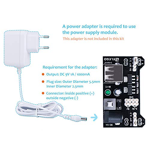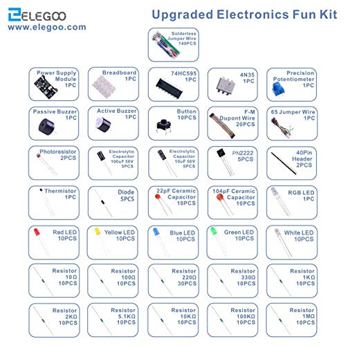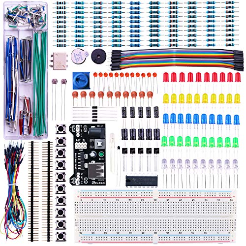 ELEGOO Kit Mejorado de Componentes Electrónicos con Módulo de Alimentación, Placa de Prototipos (Protoboard) de 830 Pines, Cables Puente, Potenciómetro, STM32, Raspberry Pi, Compatible con Arduino IDE