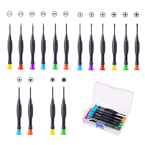 ETUKOAN Juego de destornilladores, 18 piezas, mini destornilladores, juego de destornilladores de punta fina con punta de estrella para ordenadores, gafas y relojes