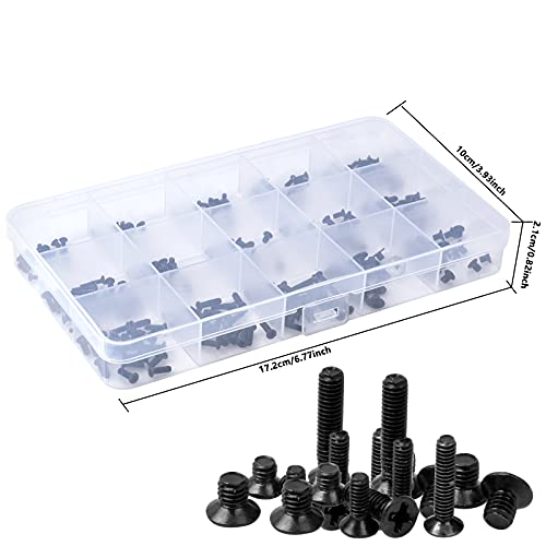 Jinlaili 300 Piezas M2 M2.5 M3 Tornillos de Ordenador PC Computadora Portátil, Tornillos Phillips Con Cabeza Avellanada Negro, Tornillos para Reparación de Disco Duro Carcasa Placa Base Ventilador