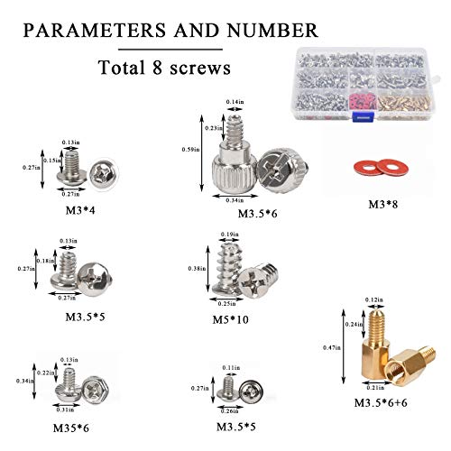 - 【Tamaño】 Hay 15 tamaños de tornillos para portátiles: M2 * 3; M2 * 3; M2 * 4; M2 * 6; M2 * 8; M2 * 10; M3 * 4; M3 * 3; M2,5 * 3; M2,5 * 4; M2,5 * 5; M2,5 * 6; M2,5 * 8; M2.5 * 12, total 300 uds. Hay suficientes tamaños y cantidades para satisfacer sus necesidades diarias y laborales.