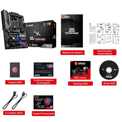 MSI MAG B550 TOMAHAWK - Placa Base Arsenal Gaming (AMD AM4 DDR4 M.2 USB 3.2 Gen 2 HDMI ATX), AMD Ryzen 5000 Series processors