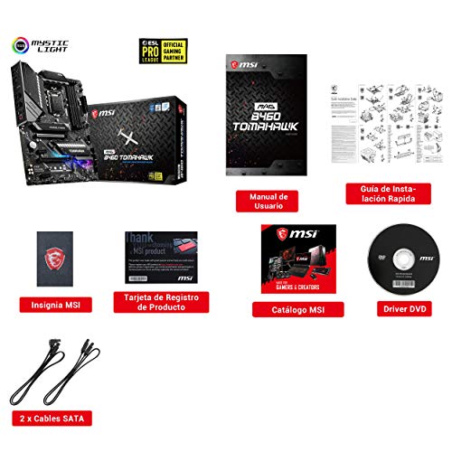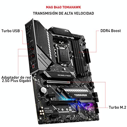 MSI - MAG B460 Tomahawk - Placa Base Arsenal Gaming (10th Gen Intel Core, LGA 1200 Socket, DDR4, CF, Doble Ranura M.2, USB 3.2 Gen 2x2, Type-C, 2.5G LAN, DP/HDMI, Mystic Light RGB)