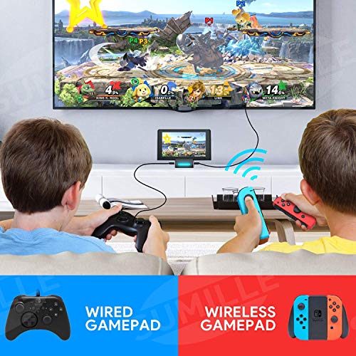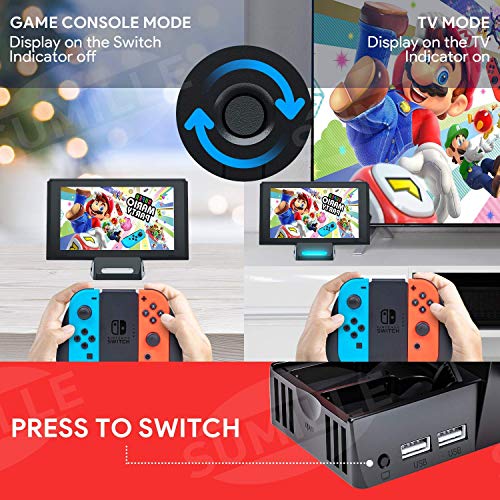 - 【Diseño Huminizado】Después de conectar el base switch al televisor/proyector con el cable HDMI y su cargador, el televisor reconocerá el Switch inmediatamente. Tiene un LED para mostrar cuando está en el modo de visualización de TV en su botón