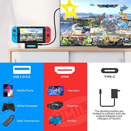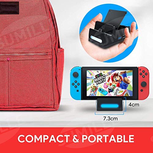 SuMile Switch Dock, Switch Base de Carga Portátil para HDMI TV Adaptador para Switch con interfaz USB 2.0 3.0 Type-C y ranura para tarjeta para almacenar 4 juegos