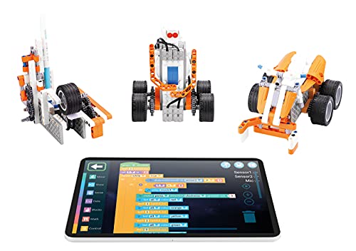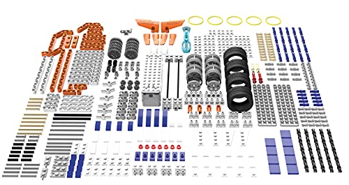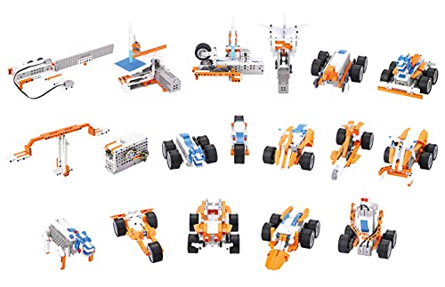 - Kit de robótica 18 en 1: incluye más de 400 piezas, 1 unidad de control con 4 luces led multicolor, 2 sensores infrarrojos y 2 motores, para realizar 18 construcciones prediseñados (tigre, jeep todoterreno, telégrafo, sistema de estacionamiento automático) y crear infinidad de construcciones propias