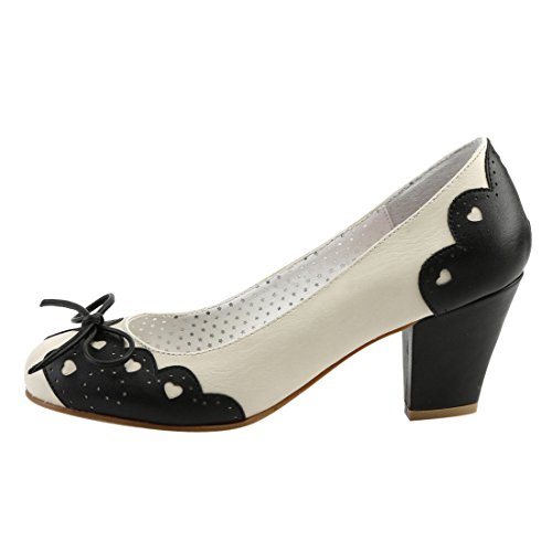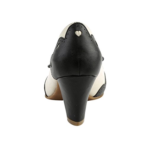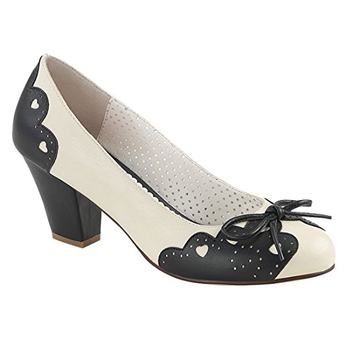 Pin Up Couture WIGGLE-17 Blk-Cream Faux Leather UK 3 (EU 36)