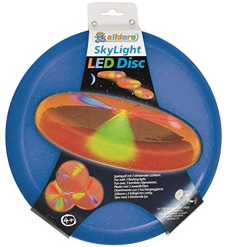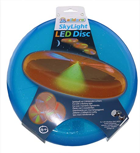 alldoro luz Sky Light de Aprox. 27 cm-Disco de frisbeescheibe con 3 LED para Playa, jardín y Exterior, para niños a Partir de 4 años y Adultos, Color Azul, (Manfred Roser 63018)