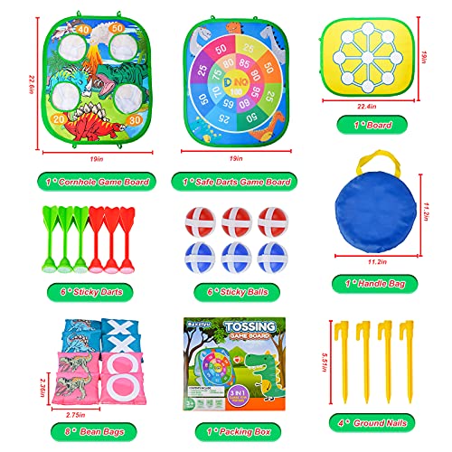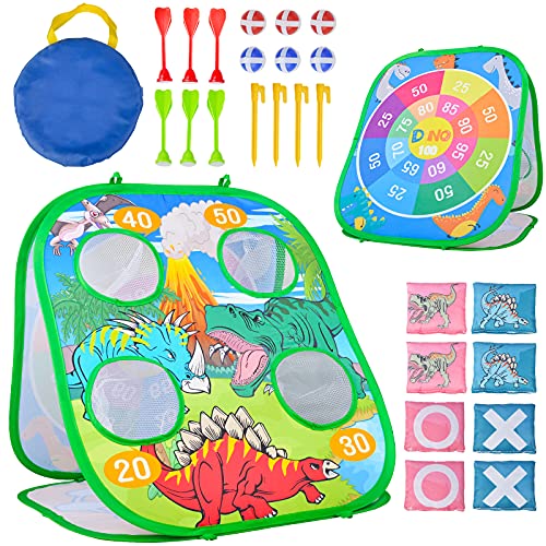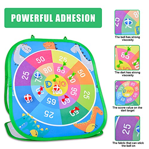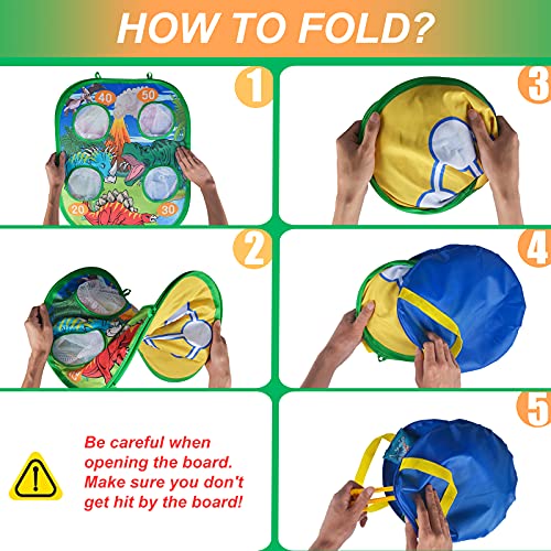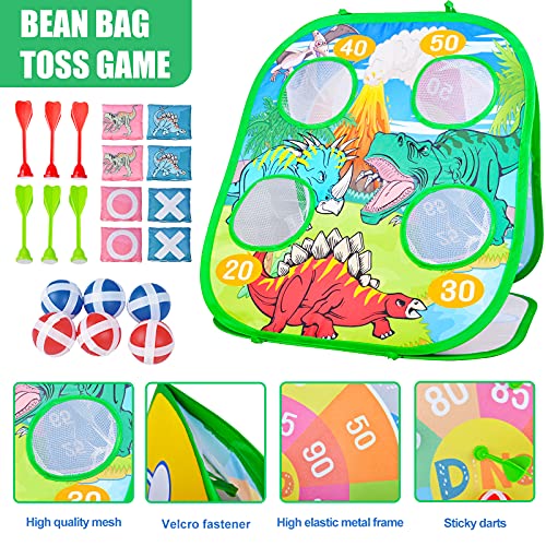 - Bonito diseño de dinosaurio que puede despertar el interés de los niños en el juego. La diana también los juegos de Beanbag están marcados con números de puntos, lo que aumenta el desafío del juego.