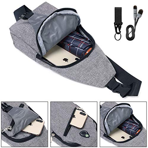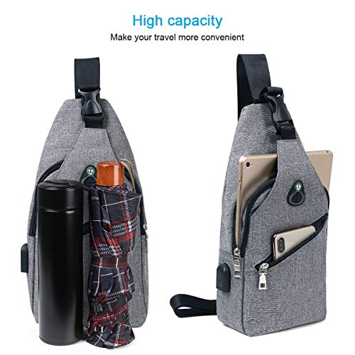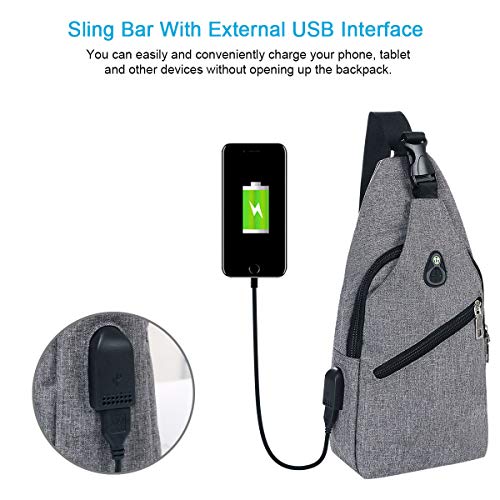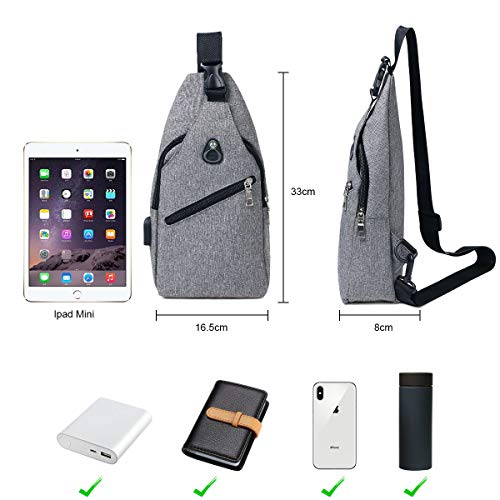 flintronic Sling Bag, Bolsa de Pecho con Puerto de Carga USB y Puerto para Auriculares, Hombres Mujeres Senderismo Ligero Mochila de Viaje (Incluye 1 Cable USB + 1 Gancho de Escalada)