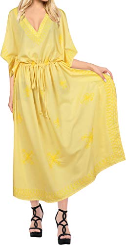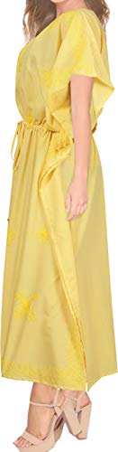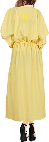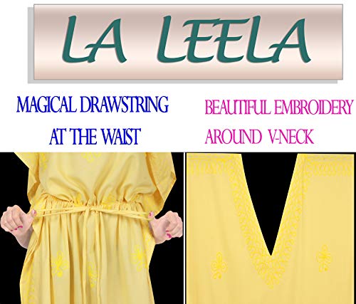 LA LEELA Mujeres caftán Rayón túnica Bordado Kimono Libre tamaño Largo Maxi Vestido de Fiesta para Loungewear Vacaciones Ropa de Dormir Playa Todos los días Cubrir Vestidos Amarillo_P874