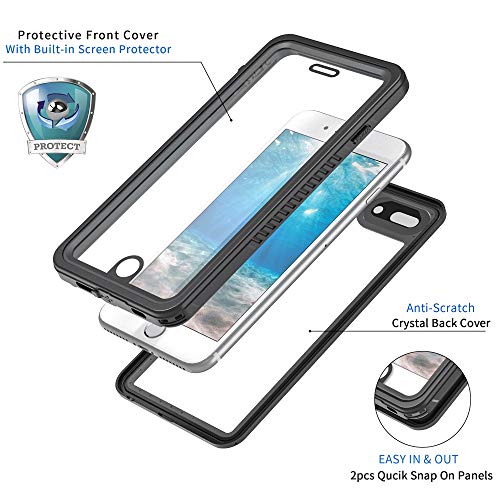 Lanhiem Funda Impermeable iPhone 7 Plus iPhone 8 Plus, Carcasa Sumergible Resistente Al Agua IP68 [Protección de 360 Grados], Carcasa con Protector de Pantalla Incorporado, Negro