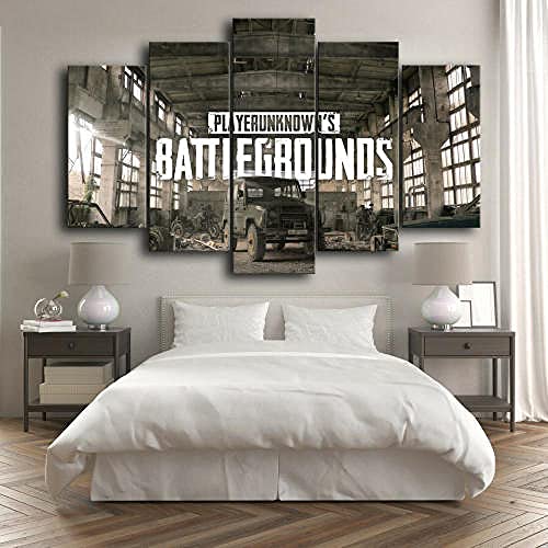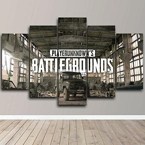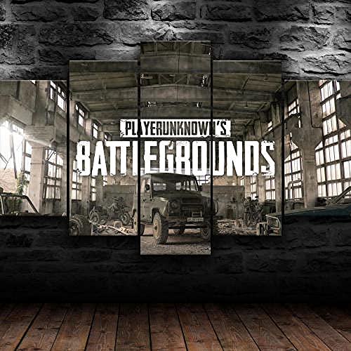 PlayerUnknow Battleground Pintura Decoración 5 Piezas Cuadro Sobre Lienzo 5 Piezas Cuadro Lienzo,Canvas 5 Piezas Pintura Sobre Lienzo,Tejido No Tejido,Hd Mural Moderno Decor Hogareña Regalo 150X80Cm
