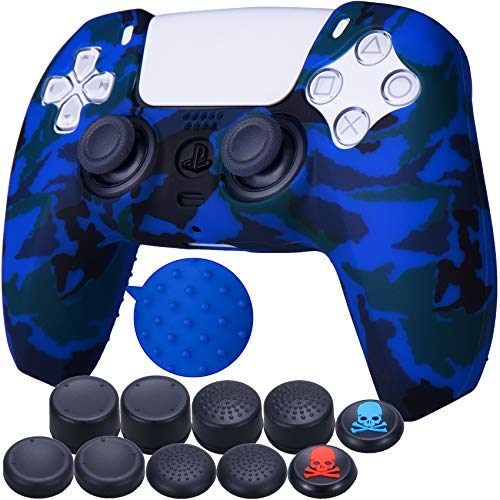 9CDeer 1 x Silicona Transferir Impresión Protector Grueso Cubrir Piel + 10 Apretones de Pulgar para Playstation 5 / PS5 / Dualsense Mando Pintar azul