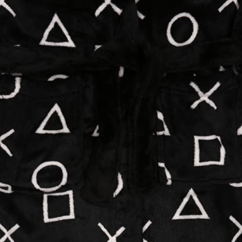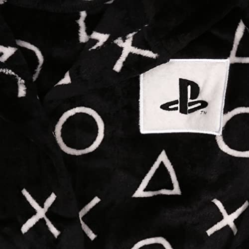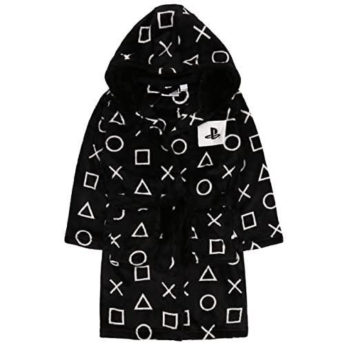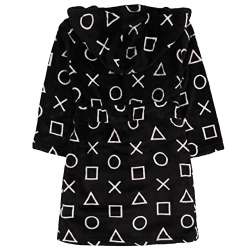 - Bata infantil negra y cálida con motivo repetitivo de consola de juegos PlayStation, con capucha.