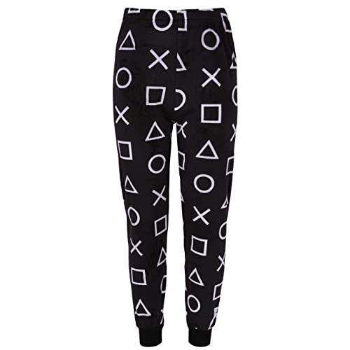 - Pantalones con símbolos repetidos de la consola de juegos PlayStation, con cintura elástica y cordones en las piernas.