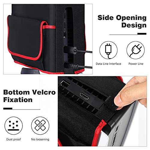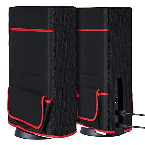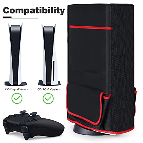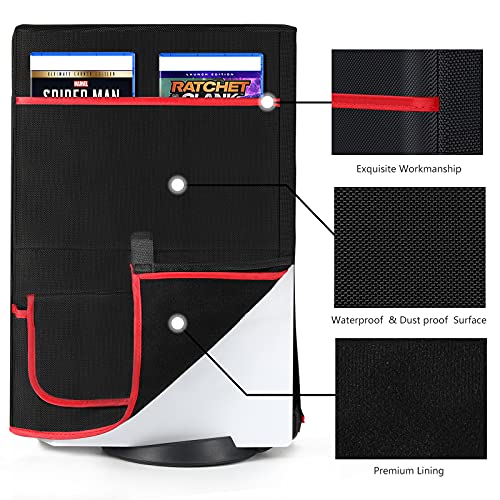 TiMOVO Cubierta Antipolvo para PlayStation 5, Funda Protectora Impermeable con Bolsillos Forro Suave Fácil Acceso para Consola Controladores Discos Juego Ediciones Digital y CD-ROM de PS5, Negro