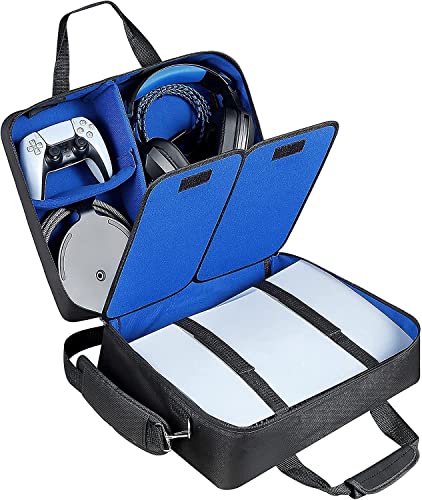 - Diseño Perfecto: esta bolsa de viaje está diseñada para PS5. Este bolso para PS5 tiene una gran capacidad. Perfectamente encajará su dispositivo para la consola, mando, el cable de alimentación de CA, el cable USB, los auriculares u otros accesorios que necesite.