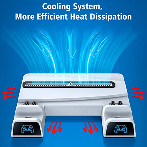 - Excelente gestión del espacio y fácil de usar: este soporte de refrigeración y carga para PS5 viene en una sola pieza con funciones versátiles, ahorra mucho espacio para mantener la consola PS5, los discos de juego y los controladores organizados y es muy fácil de configurar y usar. Ahorra espacio y permite que todo se utilice de forma segura en posición vertical.