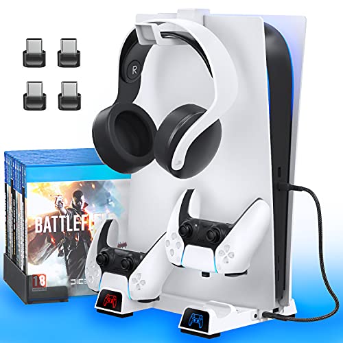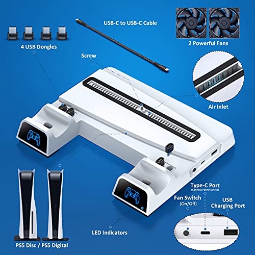 OIVO Soporte PS5 con Enfriador y Soporte para Auriculares, Enfriador PS5 y estación de Carga del Mando PS5 para Playstation 5, Accesorios PS5 para Consola PS5 con 15 Juegos Ranuras