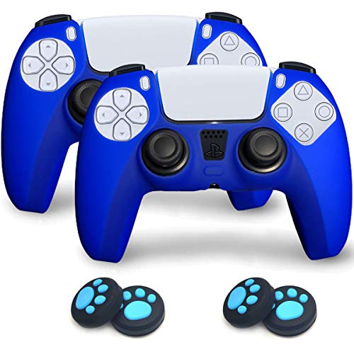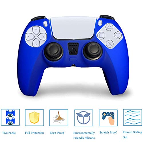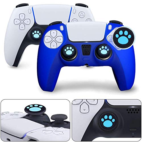 Sofunii Juego de 2 fundas de silicona para controlador de Playstation 5/PS5 con 4 unidades de empuñaduras para pulgar (azul)