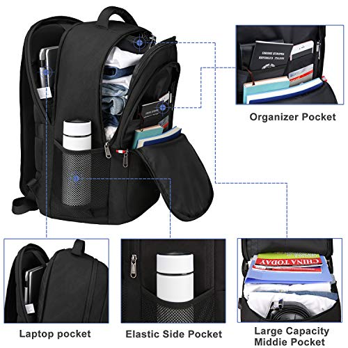 Mochila Ordenador Portatil, Mochila Antirrobo Impermeable con Cerradura Mochila Hombre 17.3 Pulgadas Mochila Portatil con Abertura de Carga USB, para los Estudios, Viajes o Trabajo - Negro