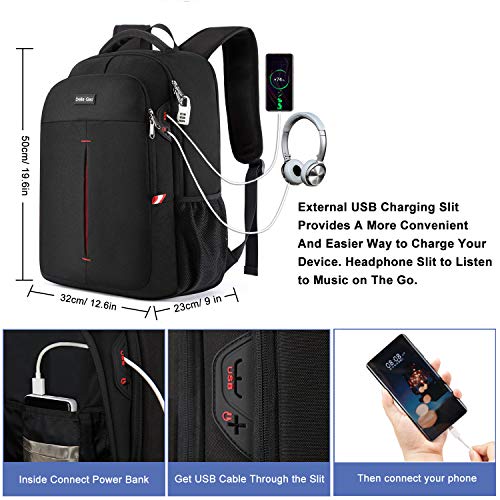 - ✅CARGADOR USB Y RANURA PARA AURICULARES: con ranura de carga USB, esta mochila USB ofrece una forma más conveniente de cargar su teléfono mientras camina. Tenga en cuenta que esta mochila no contiene el banco de energía en sí. La ranura para auriculares le permite conectar su teléfono y disfrutar de la música mientras viaja con las manos libres.