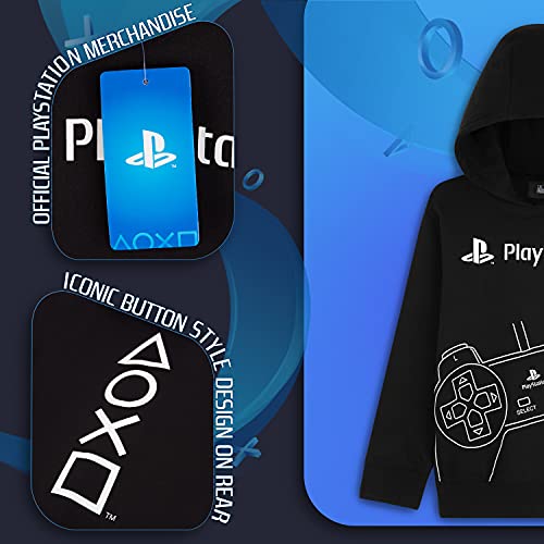 Playstation Sudadera Niño Negra, Sudaderas Niño con Capucha, Ropa para Niño 100% Algodon, Regalos para Niños y Adolescentes Edad 7-15 Años (15 años, Negro)