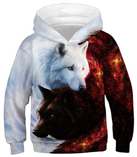 Ocean Plus Niños Sudaderas con Capucha Cool Pullover para Niños Niñas Adolescente Camiseta de Manga Larga (M (Altura: 135-140cm), Ángel y Diablo Doble Lobo)