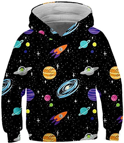 Ocean Plus Niño Estampado Animal Gatito Sudaderas con Capucha Universo Galaxia Niñas Sudadera (XXS (Altura: 105-110cm), Cohetes y Naves espaciales)