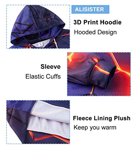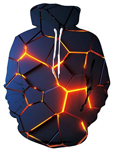 - Impreso en 3D: la impresión completa hace que su sudadera con capucha sea más personalizada y divertida, el bolsillo con cordón hace que el espacio sea perfecto para su teléfono, la llave y mantenga el cuello caliente
