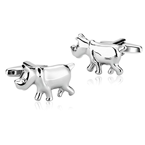 ANAZOZ Gemelos Acero Inoxidable Hombre Cabeza de Toro Circonita Blanca Gemelos Camisa Hombre Plata