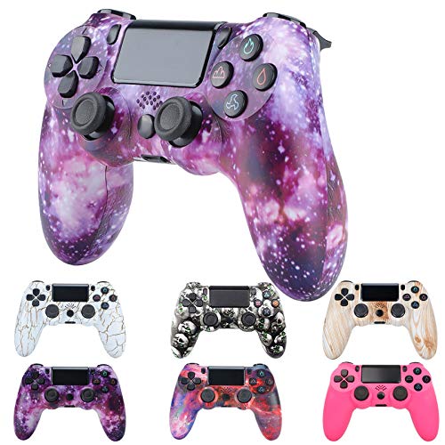 Mando para PS4, Bluetooth Mando Inalámbrico para PS4/Pro/Slim Panel Táctil Gamepad con Doble Turbo Vibración y Función Audio Pantalla LED Controlador inalámbrico para PlayStion 4 ,Purple starry sky