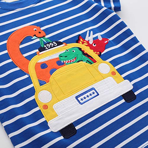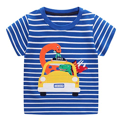 FILOWA Bebé Niño Camiseta Manga Corta Algodon Camisetas Verano Casual Dibujos Azul Rayas Dinosaurio Auto Impresión Ropa Chico Sudadera Deporte Chandal 1 2 3 4 5 6 7 Años