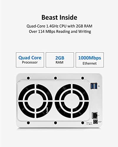 - Procesador de cuatro núcleos a 1,4 GHz con 2 GB de RAM DDR4(NO actualizable), velocidades de lectura/escritura increíblemente rápidas de más de 114 MB por segundo (RAID 0, WD Red 4TB x 2)